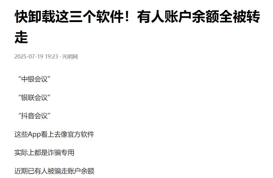 就比如“中银会议”,“银联会议”等这些APP,是不是炸一听非常官方,图标也非常整个,让人很难不去相信。